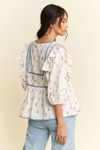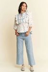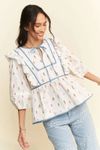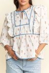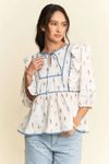 Davi & Dani Cactus Conversational Denim Binding Bodice Blouse