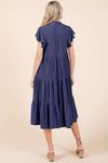 Mittoshop Ruffle Sleeve Collared V Neck Tiered Midi Dress